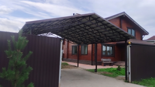 Двускатный автомобильный навес с крышей из профнастила Арт-693
